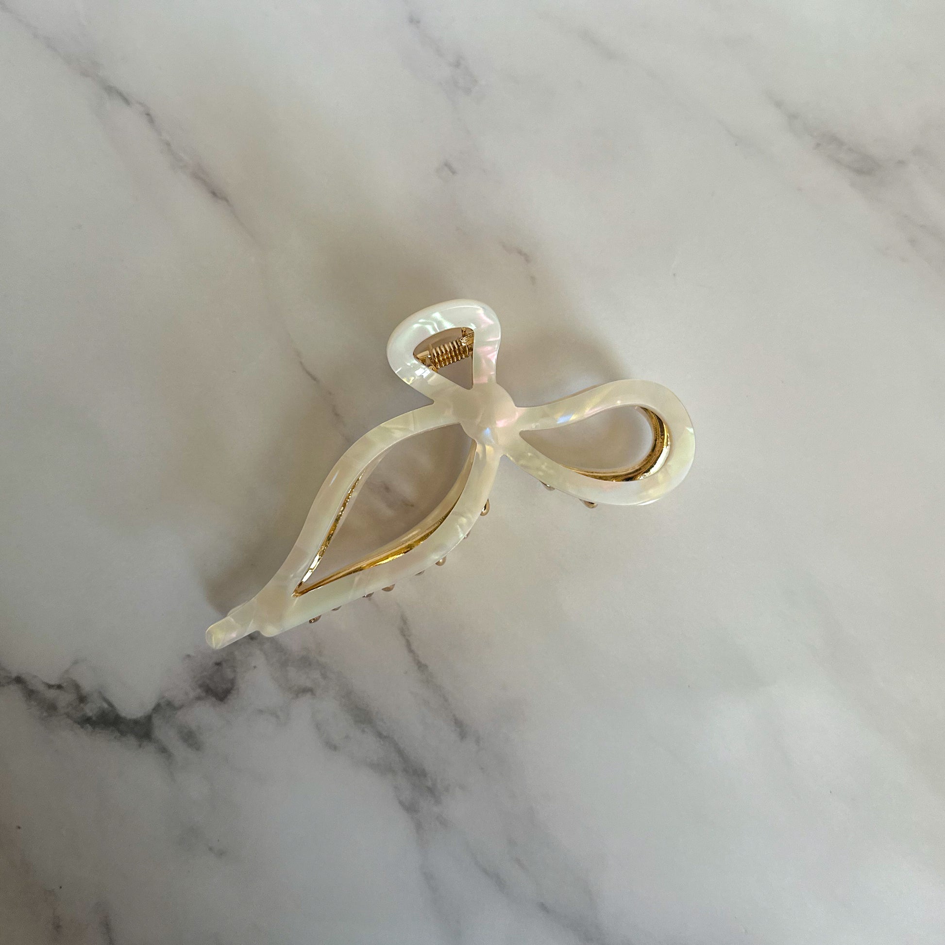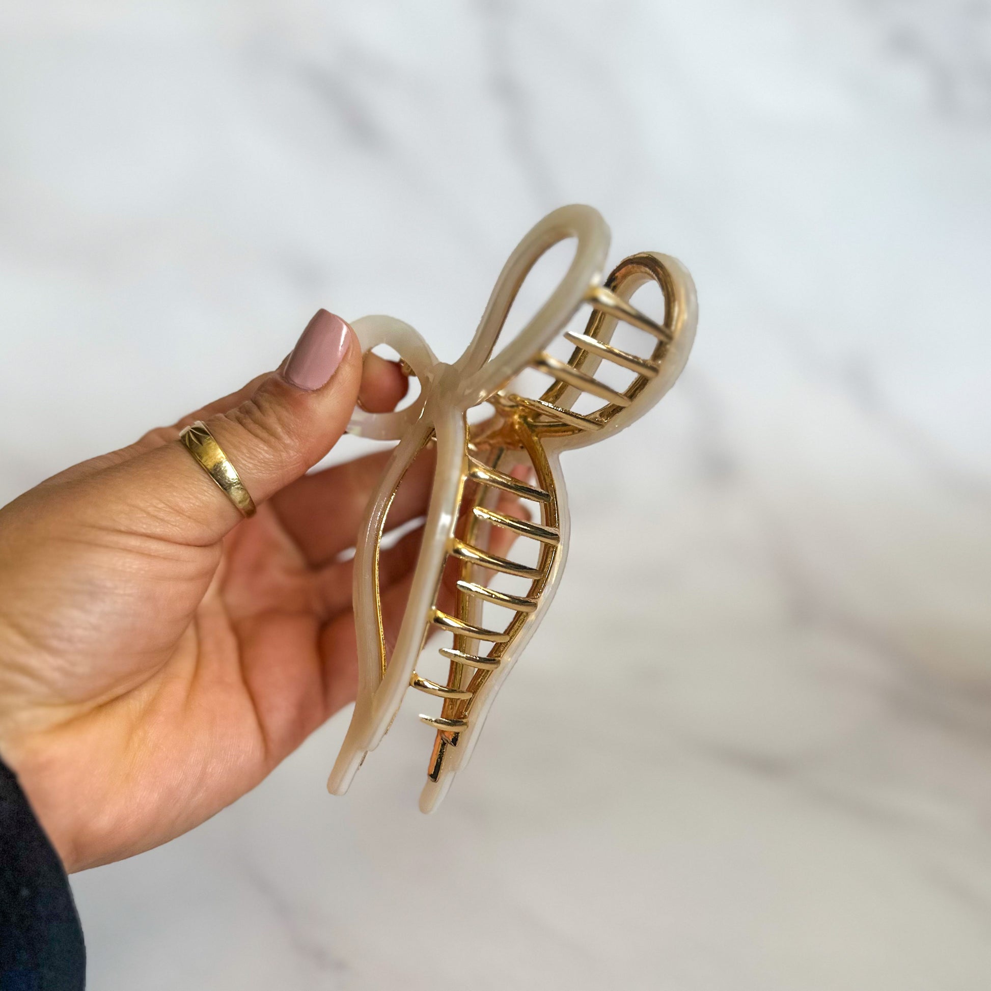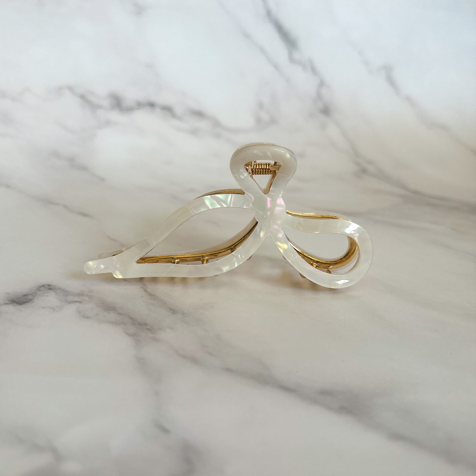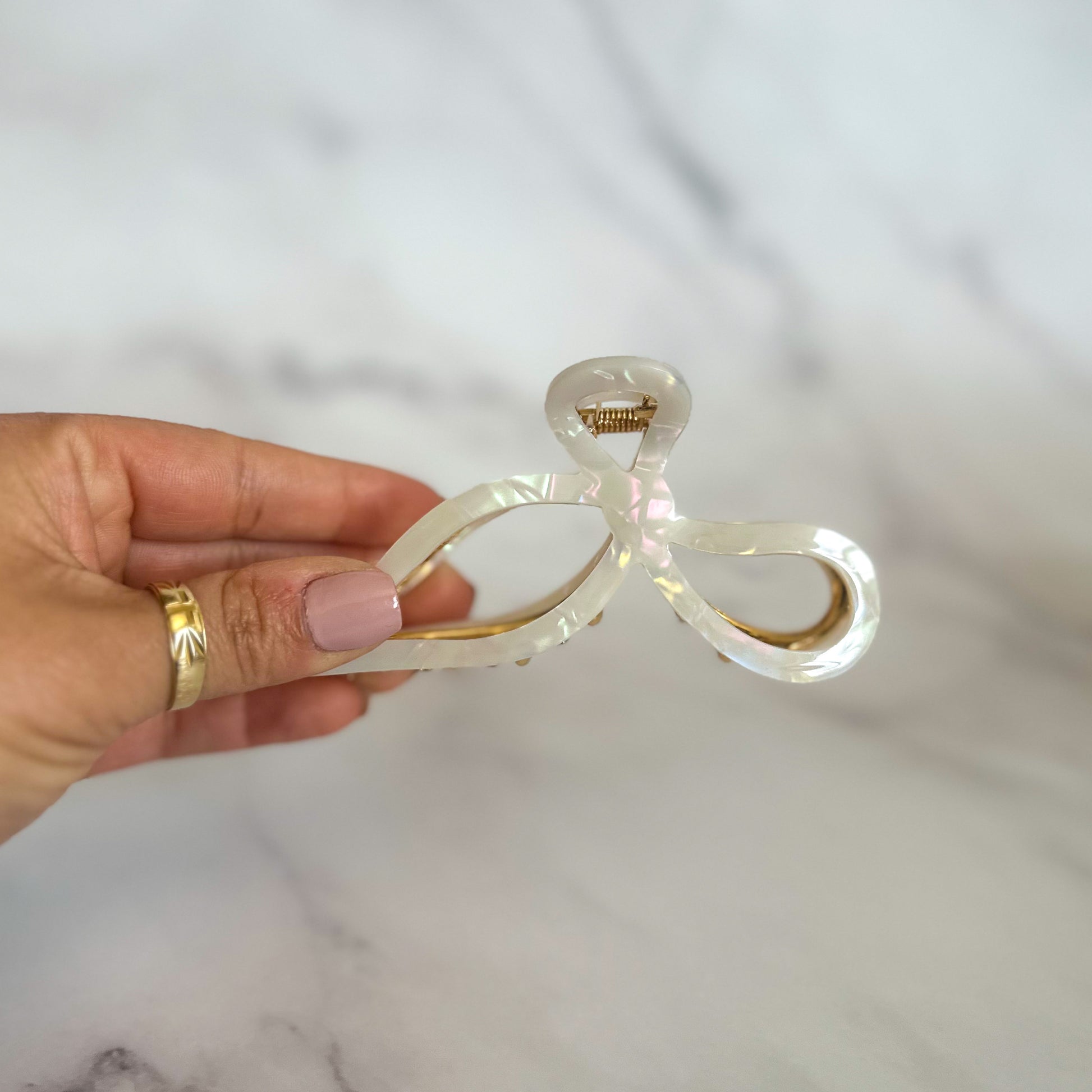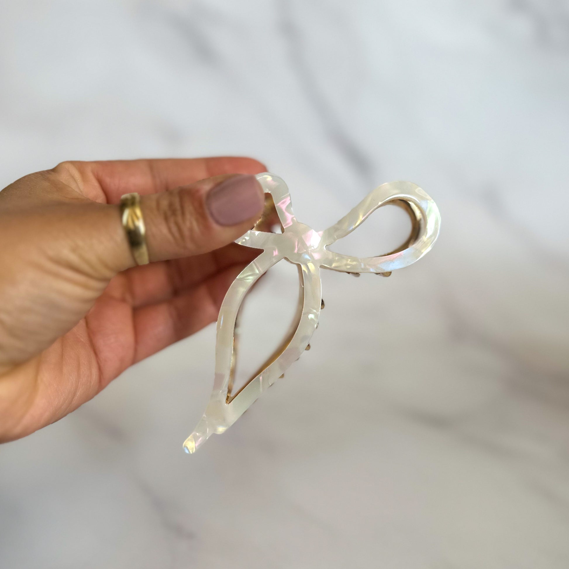 Introducing ALI, the perfect hair accessory for style and practicality. This iridescent bow shaped metal claw clip adds a touch of fun to any outfit, while providing a sturdy hold for even the thickest hair. No more slipping or breaking - ALI has got you covered (literally).