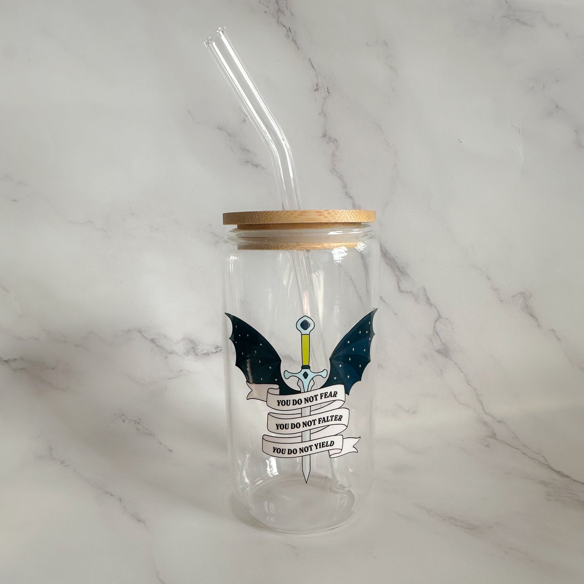 Indulge in your favorite drinks with the FEYRE glass can cup, designed for fans of ACOTAR and fantasy books! Let this unique cup transport you into the world of Prythian and quench your thirst with literary magic. A must-have for any book lover, cheers to a drink in hand and a journey in mind!