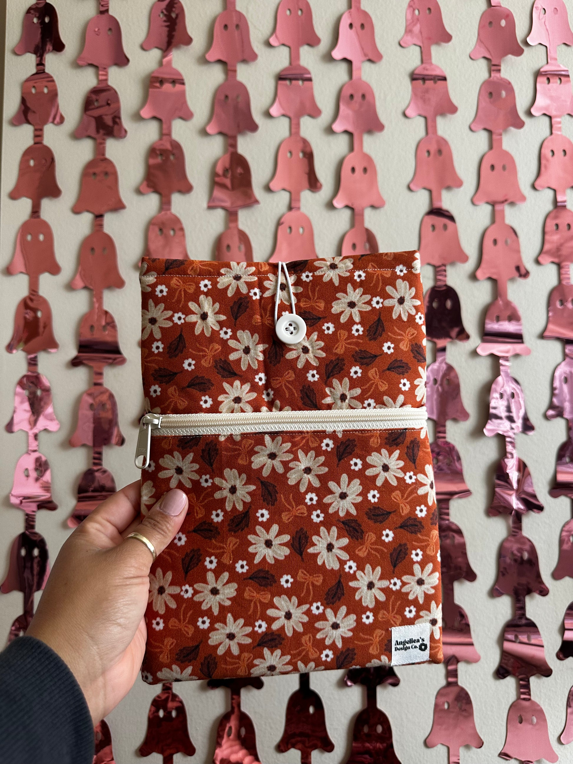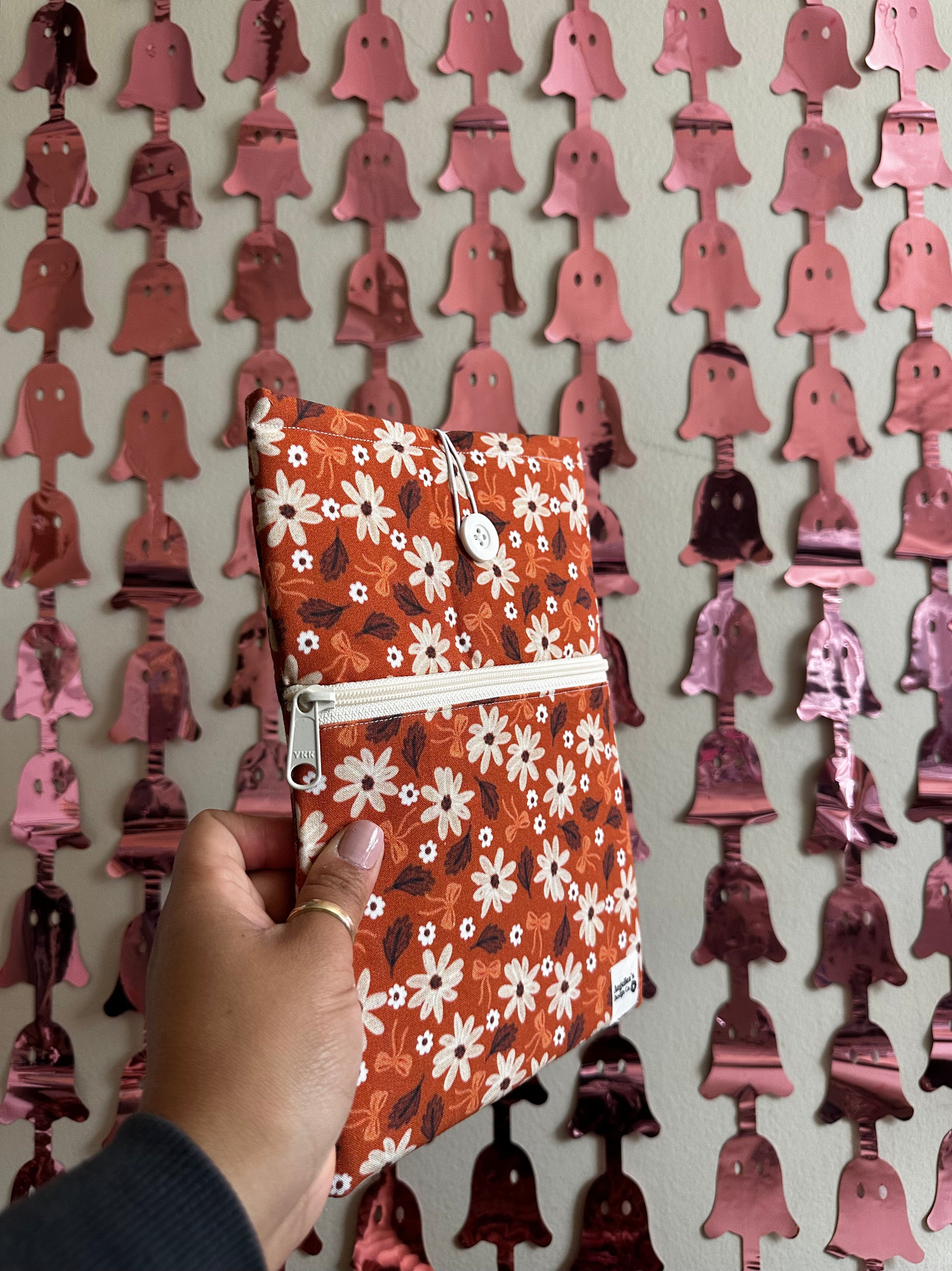 So, I created the perfect padded book sleeves for readers who need to carry all their bookish essentials without any mishaps! Featuring a zippered pocket for accessories, and a button with elastic loop to keep everything secure, our sleeves come in three sizes and a variety of cute prints. A must-have for any bookish girlie!