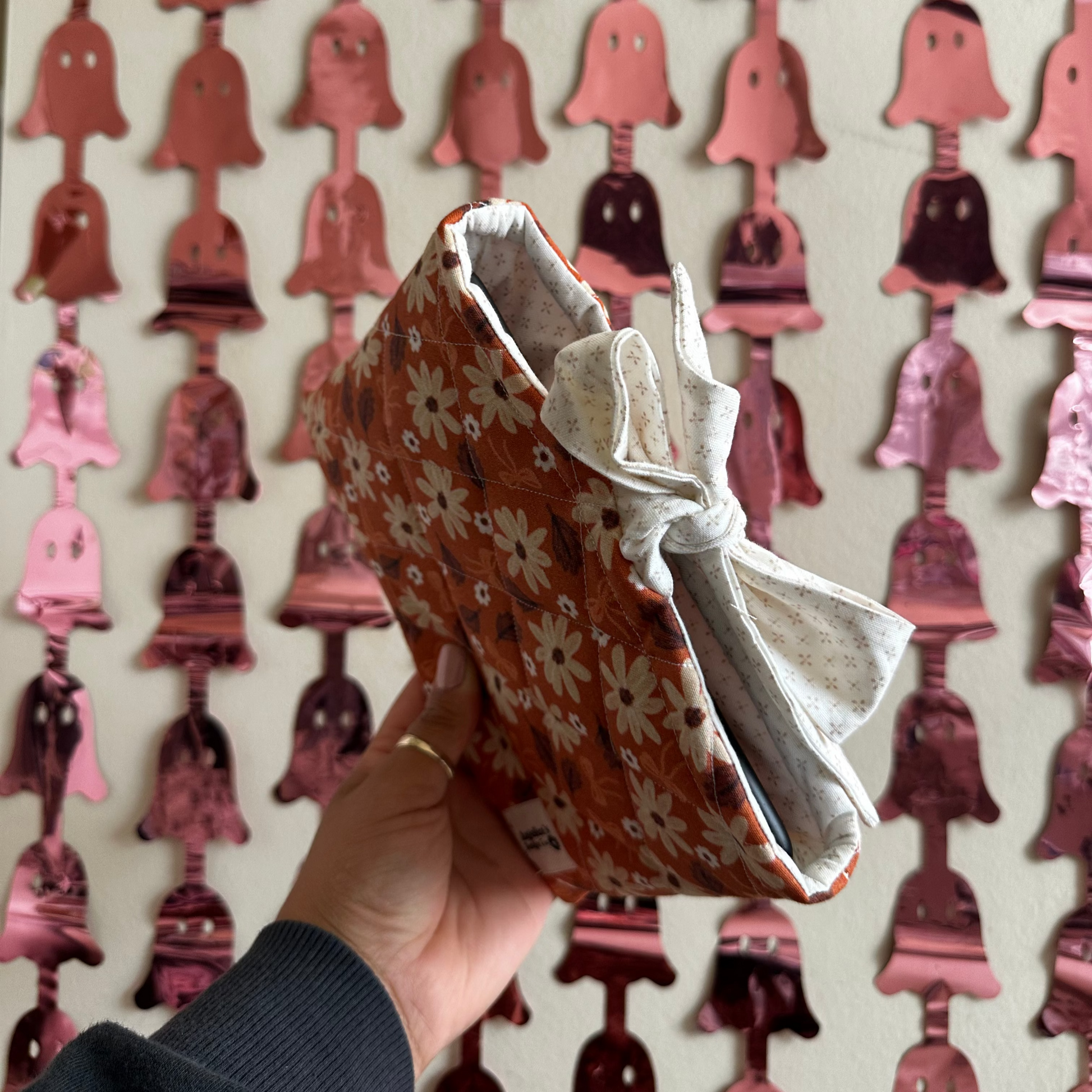 Snuggle up your reads with our quilted booksleeve! Featuring a side opening and fabric ties that tie into a cute bow, it keeps your e-readers or books safe and stylish. Add a sprinkle of cozy vibes to every page-turning moment and make your reading routine extra special!